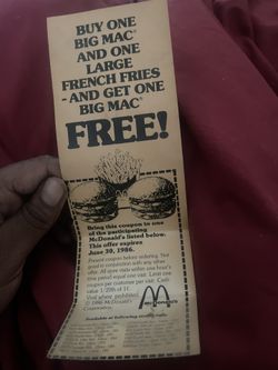 McDonald’s Coupon From 1986 Rare Still In Great Condition $100Cleveland, OH