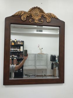 LIKE NEW SOLID OAK WOOD HAND CARVED FRAME MIRROR$260Great Neck, NY