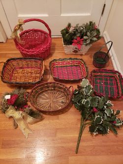 Lot of 7 Christmas XMas Holiday Baskets Holly Artificial$20Bardonia, NY