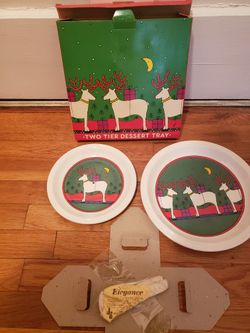 Christmas Reindeer Two Tier Dessert Tray Houze Glass Made In England NIB Vintage 1985 Holiday$20Bardonia, NY