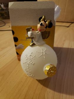 Disney Parks Christmas Ornament Victorian Minnie Mouse Angel Glass Globe Snow Flakes Vintage 1997$20Bardonia, NY