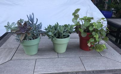 Swedish Ivy, ripple jade & various succulents in ceramic planters$25Elk Grove, CA