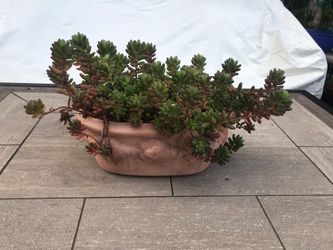 An oval terracotta pot full of jelly bean succulents $18Elk Grove, CA