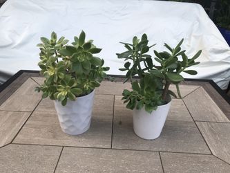 Kiwi, jade & aeonium succulents in 2 white ceramic pots$25Elk Grove, CA