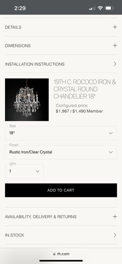 $1,987 value for $799 RESTORATION HARDWARE 19th C. Rococo 18” chandelier $799Orlando, FL