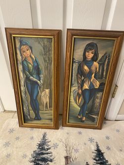 Vintage 1960s Big Eyed Girl Framed pictures, Jean Maio MCM Art (Set of 2)$300Manorville, NY