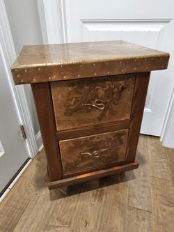 Artisan Crafted Cooper And Wood Table, Beautiful One Of A Kind, 16w X 21d X 29h. Heavier Piece $85Huntersville, NC