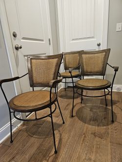 Three Frontgate Chairs Iron , Wicker N Wood. 33" H, Seat 18" H. One Chair Retails 240$90Huntersville, NC