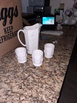 Milk Glass Pitcher With 3 Cups$15Bethpage, NY
