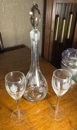 Etched Glass Decanter Set With Two Wine Glasses$40Commerce, TX