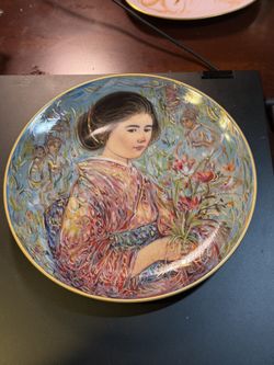 collectible porcelain plate titled "O-Hana", part of "The World I Love" series by renowned artist Edna Hibel. $16Lawrenceville, GA