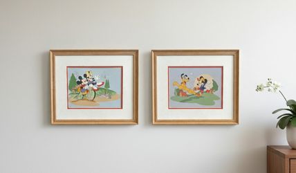 Vintage Disney Mickey/Minnie Mouse and Mickey/Pluto "Pointer" Framed Print Art$62San Antonio, TX