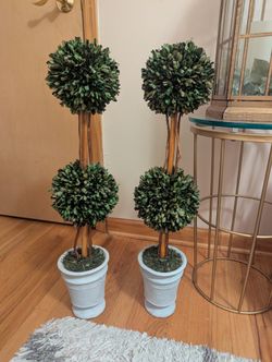 a preserved boxwood topiary set, with some likely being the Nearly Natural 2-foot Boxwood Topiary with 2 spheres$80Clark, NJ