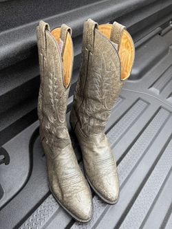 Tony Lama Western Boots Gray Textured πBelly Leather Menβs 9D Vintage Style 8286$328Houston, TX