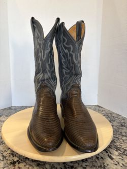 Justin 8307 Teju Lizard Cowboy Boots Mens 9C Cognac Brown Snip Toe Vintage USA$295Houston, TX