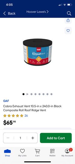 2 Pack - GAF Cobra Roof Ridge Exhaust Vent 10 1/2-inches x 20-Feet$70Indian Springs Village, AL