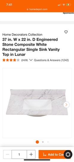 36 in. W x 18 in. D Single Sink Vanity Top with 3-Faucet Holes$60Indian Springs Village, AL