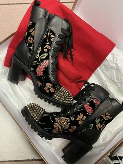 CHRISTIAN LOUBOUTIN CROC SPIKE STUDDED FLORAL-EMBROIDERED BOOTS BLACK SIZE 37$745Miami Beach, FL
