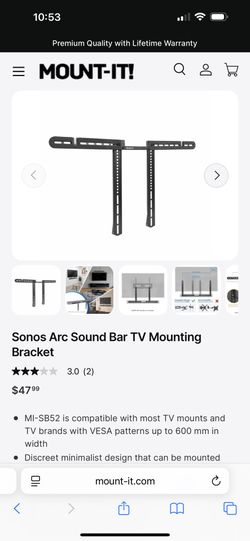 Sonos Arc Sound Bar TV Mounting Bracket$15La Costa, CA