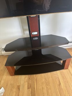 Tv Stand mount, 3 glass shelves, black and wood, living room$30Wayne, NJ