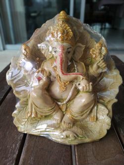 Om🕉️ Lord Ganesha On Leaf Sculpture Vibrant Colors And Excellent Details Crafted With Stone Acrylic Mix Plaster $20Aloma, FL