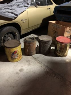 Four large antique vintage steel cans marathon food etc$100Fort Wayne, IN