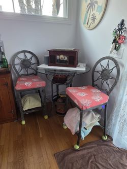 Heavy duty kitchen Wrought iron glass table and 4 chairs. 4 Feet Wide .great Apartment Table Or Small Kitchen h$300Atlantic Highlands, NJ