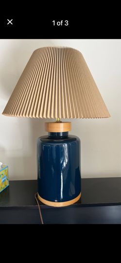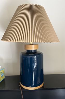 Cylinder Ceramic Lamp - 28" high - 3 way switch Beige pleated shade 9.5 Diameter . Cash only. In San Francisco$75San Francisco, CA