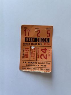 Sf Giants Ticket August 24, 1975 – No Hitter Game$75San Francisco, CA