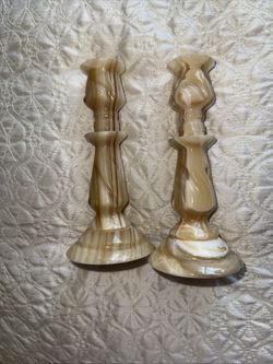 Two Vintage Carved Onyx Marble Candlesticks. 6”$15Maitland, FL