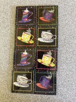 Coffee Cups Latte Glass Square Coasters Barb Tourtillotte Set of 8 Modern Art Deco Coasters Set Of 8$15Maitland, FL