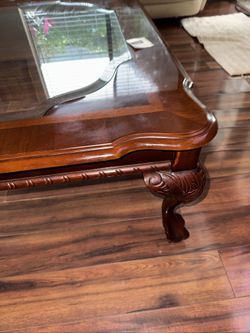 Large Glass Coffee Table Large glass-coffee table. Chippendale ball and claw legs ??? H = 15” W = 39” L = 49” Cherry wood$250Longwood, FL