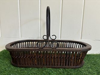 Vintage Wood Basket approximately 19.5”ux 8.75”x 4.75" Metal Handle Dark Brown Farmhouse Rustic$25Clinton, MA