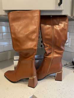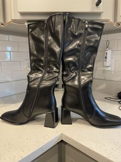 Women's Knee High Boots Block Metal Heel Square Toe Side Zipper Soft PU Leather Classic Fashion Dress Long Boots$30Schererville, IN
