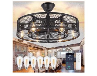 DLLT Caged Ceiling Fan with Lights: 26" Bladeless Fandelier with Light and Remote $90Grand Terrace, CA