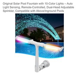Original Solar Pool Fountain with 10-Color Lights – Auto Light Sensing, Remote-Controlled, $40Grand Terrace, CA