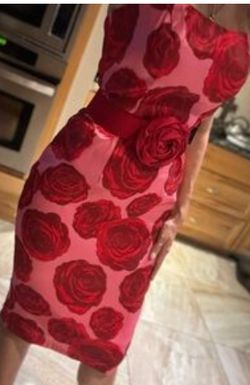 Strapless Red Rose Print Dress with Belt
