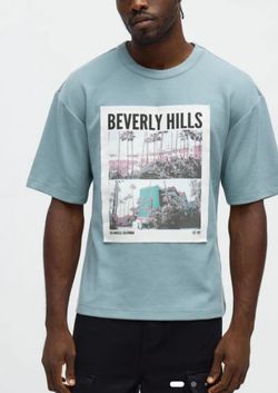 Relaxed Beverly Hills Frayed Patchwork Short Sleeve Tee - Blue/combo$10Los Angeles, CA