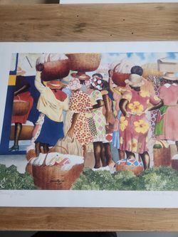 Signed Print Boarding The Bus Edwin Harris 1989$20Santa Monica, CA