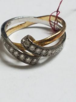 Vintage looking 2 Toned Gold plated Sterling Silver 925 CZ Crossover Design Ladies Fashion Ring Size 11$39West Babylon, NY