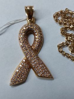 14Kt Yellow Gold 0.52 Ctw Diamond Studded Rose Gold Front Breast Cancer Awareness Ribbon Chunky Pendant 40 mm Drop$595West Babylon, NY