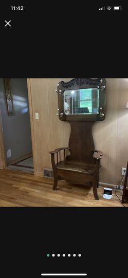 Antique Quartersawn Oak Victorian Carved Hall Tree Seated Bench Beveled Mirror$500Youngstown, OH