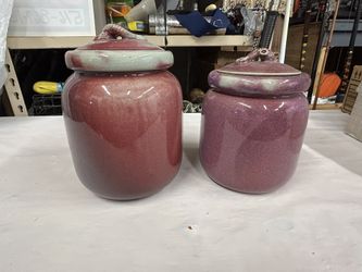 Vintage Set Of 2 Mikasa/Larry Laslo/Cranberry Glazed Stonewear Canisters/Lidded/2Sizes/1970’s$25Merrick, NY