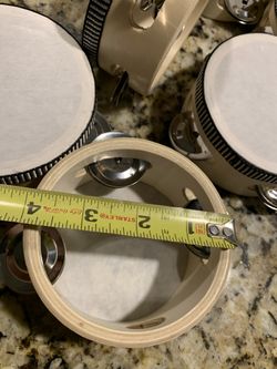Set Of 4 Wood/metal 4 Inch By 2 Inches Tall Tambourines. Has Accented Fabric Trim, Solid Wood.$2Wilmington, NC