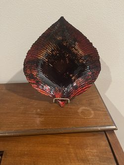 Vintage Leaf-Shaped Art Glass Bowl or Ashtray, with a red and black color scheme, 10”$29Lubbock, TX