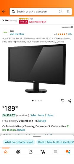 Dual 27" Monitors Acer K272HL$250Marlborough, CT