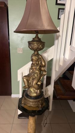 Antique Very Heavy Cast In Bronze Or Brass Cherub Lamp 31”$150Hialeah, FL