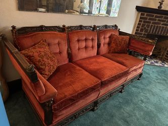 Vintage Antique Red Velvet Couch COVERED FOR DECADES$80Queens, NY