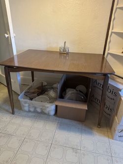 Mid-century walnut Walter of Wabash dining table with leaf$65Queens, NY