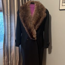 Women’s / Ladies Long Black 100% Wool Coat w/ Raccoon Fur Collar - Sz. 10$65Woodbridge Township, NJ